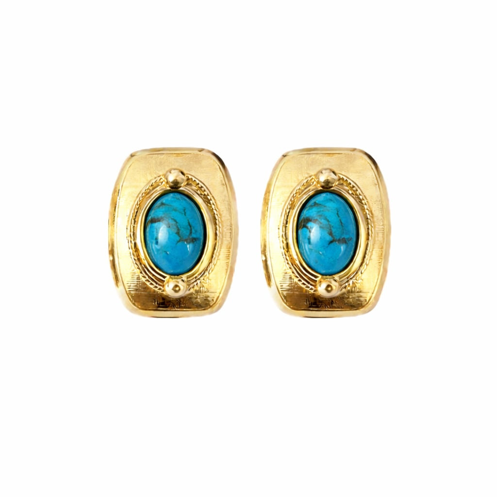 Rievoca l'eleganza senza tempo con i nostri orecchini stile vintage, arricchiti da pietre colorate che catturano lo spirito gioioso dell'epoca. Con un design che richiama il fascino del passato e una selezione di pietre vibranti, questi orecchini aggiungono un tocco di classe e originalità ad ogni look. Indossali per esprimere il tuo stile unico e lasciati trasportare in un'atmosfera di glamour vintage!
